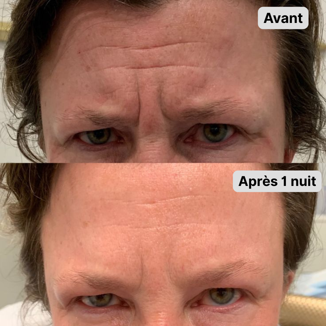 - Après 7 jours : rides d’expression visiblement adoucies.